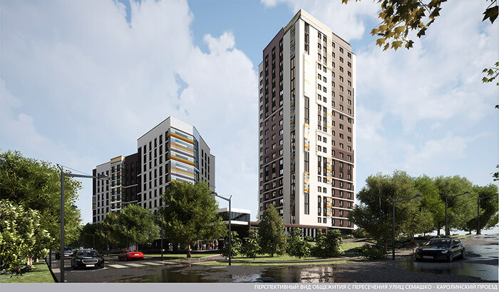 В марте начнется строительство нового общежития в Студенческой деревне. Это будет кампус для студентов двух вузов — БГМУ и БГУИР, — сообщает агентство «Минск-Новости». Подробности о новостройке в Студенческой деревне рассказал первый заместитель директора — главный инженер УКС Мингорисполкома Алексей Щербач. Объект разместится на свободном участке вблизи пересечения ул. Семашко и Каролинского проезда. Он представляет собой два жилых корпуса в 11 и 20 этажей, объединенных пристройкой. Более низкая часть предназначена для медуниверситета и рассчитана на 500 мест. В ту, что повыше, заселятся 530 студентов университета информатики и радиоэлектроники, двухэтажная пристройка также будет принадлежать БГУИР. Почему строение состоит из нескольких корпусов? Такая конфигурация здания обусловлена сложной градостроительной ситуацией. При проектировании нужно было сохранить инсоляцию (освещенность помещений солнцем) двух соседних существующих общежитий и обеспечить этот же норматив для нового объект