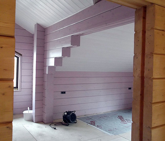 Большинство людей считает, что покраска поверхностей из дерева дело простое и не требует каких-то определённых знаний, навыков. Достаточно облачиться в подменную одежду, обмакнуть кисть или малярный валик в краске и начать работать. Но при таком подходе результат скорее разочарует, чем обрадует. Поэтому во избежание неприятного сюрприза, прежде чем приступать к окраске потолка, стен или полов, хотя бы кратко ознакомьтесь с рядом обязательных правил. Рассмотрим вариант покраски стен вашего дома. Работу начинают в тех местах, которые не находятся в постоянном поле зрения, т.е. с черновых стен. Их необходимо тщательно подготовить, потому что от качества подготовки зависит, как ляжет краска на поверхность, и не сгниёт ли дерево под лакокрасочным покрытием. Подготовка, в первую очередь, заключается в очистки от различных загрязнений. Используйте для этого металлическую щётку и шпатель. Участки, поражённые плесенью и грибком, нужно обработать специальным раствором. Места на полотне доски, им