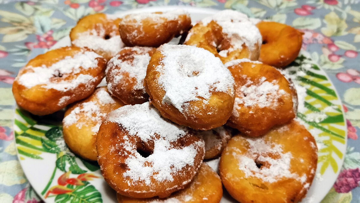 Ингредиенты: - Мука (1,5 стакана) - Молоко тёплое (0,5 стакана) - Сливочное масло (30 грамм) - Яйцо (1 шт.) - Сахар (2 стол. ложки) - Цедра одного лимона - Щепотка соли - Разрыхлитель (0,5 стол. ложки) - Ванилин (на кончике ножа) Процесс приготовления: 1. В тёплом молоке растворим 2 стол. ложки сахара и щепотку соли. Тщательно перемешаем. 2. Добавим яйцо. И еще раз тщательно перемешаем. 3. В муку добавим пол столов. ложки разрыхлителя, ванилин. И перемешаем между собой сухие ингредиенты. 4. Лимон вымыть, обсушить бумажным полотенцем. Цедру лимона натереть на мелкой тёрке. 5. Натёртую цедру отправляем к молоку и яйцу. Перемешиваем. 6. Муку соединяем со сливочным маслом и перемешиваем, понемногу добавляя яично-молочную смесь. 7. Готовое тесто раскатываем скалкой до толщины 0,5 см. 8. Формочкой вырезаем кружочки в тесте. В центре кружочка делаем небольшое отверстие. 9. Разогреваем на плите растительное масло. Выкладываем в него пончики. 10. Обжариваем пончики во фритюре до золотистого ц