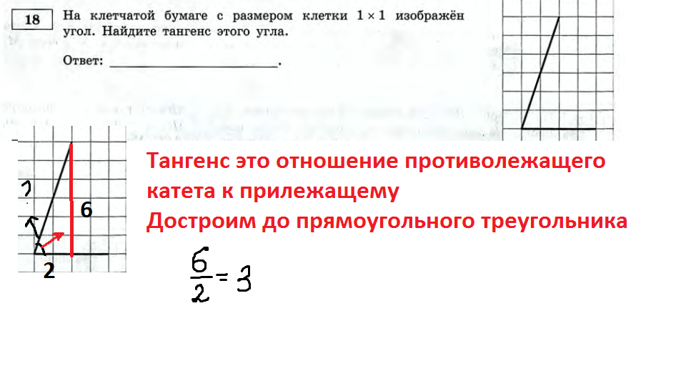 На клетчатой бумаге с размером клетки 1*1 изображен угол.Найдите тангенс этого угла