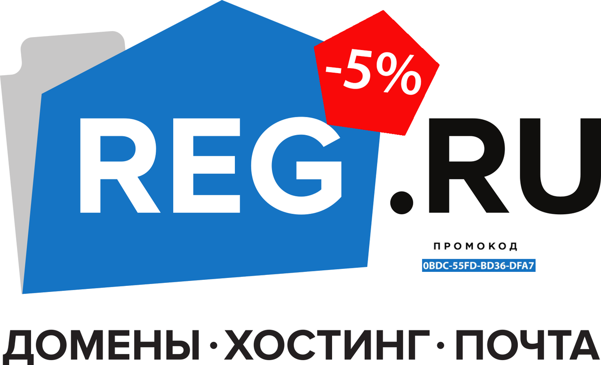 Промокоды от REG.RU являются самым выгодным и щедрым подарком за 2022 год! Выгодность этих промокодов заключается том, что они дают скидку 5% на любые заказы в REG.RU, в том числе, на приобретение доменов, надежного хостинга, качественного VPS и серверов. Этот уникальный промокод необходим для 5% скидку от цены любых видов услуг на регистраторе REG.RU: 0BDC-55FD-BD36-DFA7 Для получения этой щедрой скидки просто активируйте полученный промокод. Для этого просто скопируйте промокод, вставьте в нужное окно на форме заказа услуг REG.RU или наберите с помощью клавиатуре на указанное окно. Промокод можно использовать один раз после регистрации на REG.RU. Рег.ру, как регистратор доменных имен в Российской Федерации в течение своей десятилетней деятельности собрал аудиторию из миллиона пользователей и успешно выполнил более 25 миллиона заказа, в том числе в сфере покупкиу доменов, хостинга, VPS, SSL, CMS, конструктора сайтов и т.д. Ссылка для перехода на официальный сайт Рег.ру: www.reg.ru.