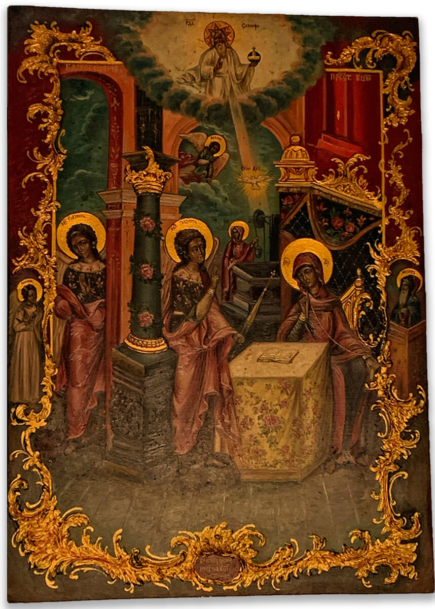 События Благовещения описаны единственным евангелистом — апостолом Лукой. В своём Евангелии он сообщает, что в шестой месяц после зачатия праведной Елизаветой святого Иоанна Предтечи архангел Гавриил был послан Богом в Назарет к Деве Марии с вестью о грядущем рождении от неё Спасителя мира: