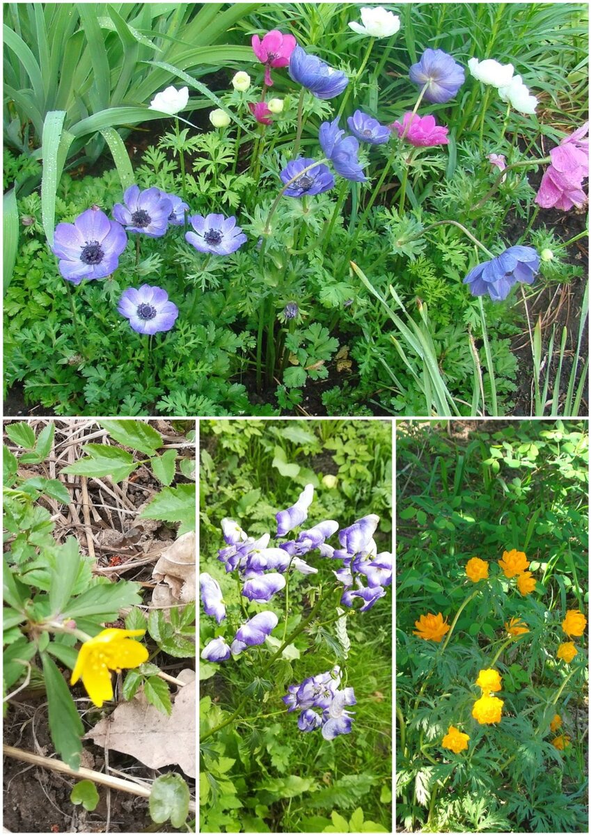 Собственно, мы ее ветреницей и называли в детстве. Цветок из моего детства. И моего настоящего. Есть еще лютичная форма, с желтым цветком. У меня и такая растет. На коллаже.