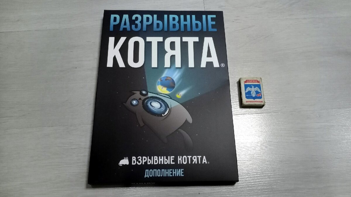 Доброго времени суток, дамы и господа! Свежие настолочки подъехали, так что пришло время. Почти 2 года назад я обозревал «Взрывных котят 18+», когда даровал игрушке звание «Самая упоротая настольная игра, что попадала ко мне в руки». Ребят из «Hobby World» такая трактовка устроила, поэтому решили прислать дополнение к игре, но не «18+», а к стоковой версии. По факту, доп легко будет играться и с версией «18+». Если где-то и есть маркетинговые гении, то... ... они работают в «Exploding Kittens LLC». Нет, серьёзно! Самое годное в допе — коробас. Вы ещё помните, как выглядела коробка к «Котятам 18+»? Вот так она выглядела. По факту, это был бокс для хранения карт, чьи размеры не шибко превышали габариты самих карт. В этот раз авторы решили пойти ещё дальше — принеся коробас с почты и достав его из почтовой коробки, я удивился. По форме сия конструкция напоминает коробку для конфет, но никак не коробку для настольной игры (первое фото в статье, коробок спичек для масштаба). Большая, широка