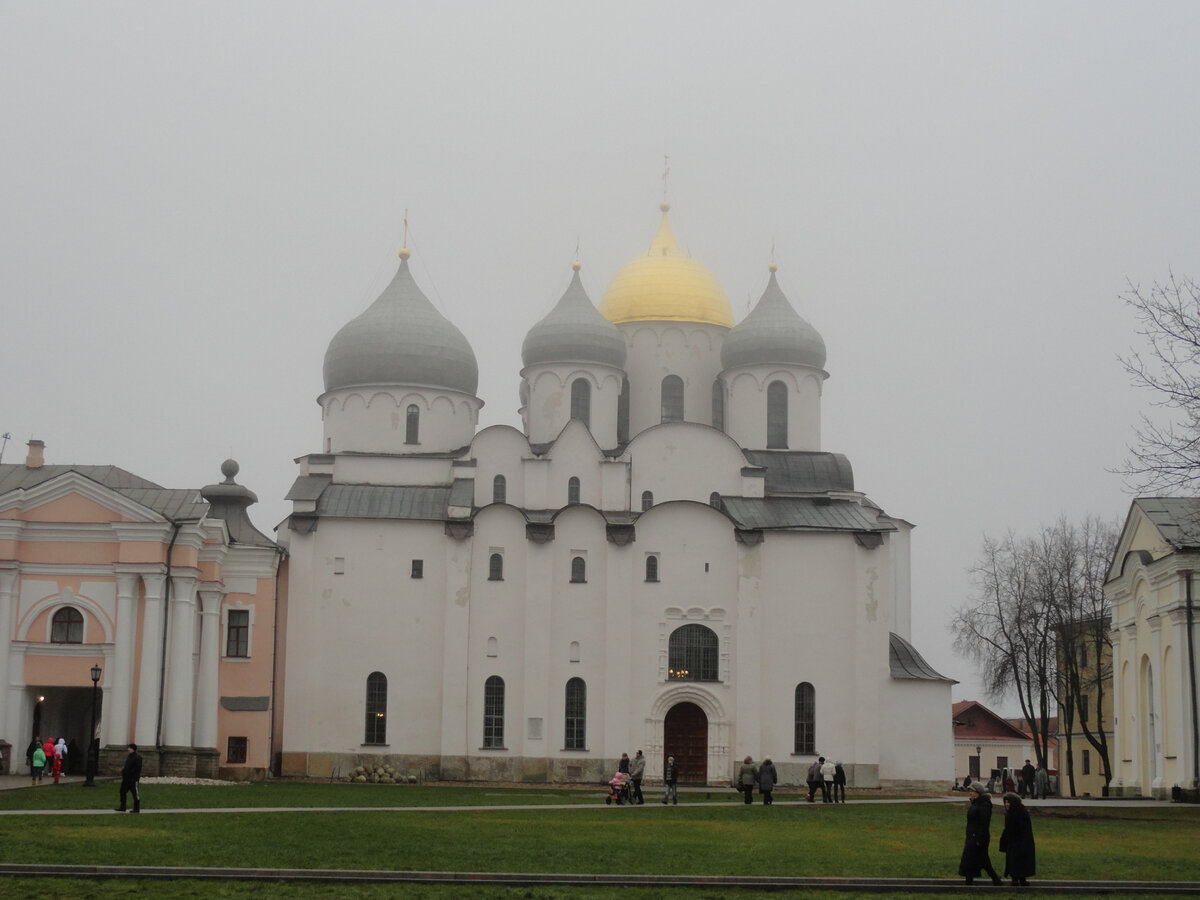 Храмов и соборов в нашей стране предостаточно и некоторые из них имеют богатую историю, такие как Спас на Крови в Санкт-Петербурге или собор Василия Блаженного в Москве, но все они моложе самого древнего храма страны, построенного едва ли не тысячу лет назад и хорошо сохранившегося с тех пор. Где находится этот храм? Столь древний храм находится в историческом, давно существующем, удивительном городе Великий Новгород на территории детинца (кремля). Подробнее о кремле можно прочитать здесь. Здание расположилось, можно сказать, в сердце кремля, причем оно изначально там и строилось, то есть ни откуда и никуда не переносилось. Софийский собор – самый древний храм России, построен в 1045–1050 гг. по заказу новгородского князя Владимира, сына Ярослава Мудрого. Дом Святой Софии был главным политическим и культурным центром. «Где София, тут и Новгород» – говорили жители средневекового Новгорода. Да-да, храм строился еще во времена князей, поэтому совсем не удивительно, что в нем хранятся мо