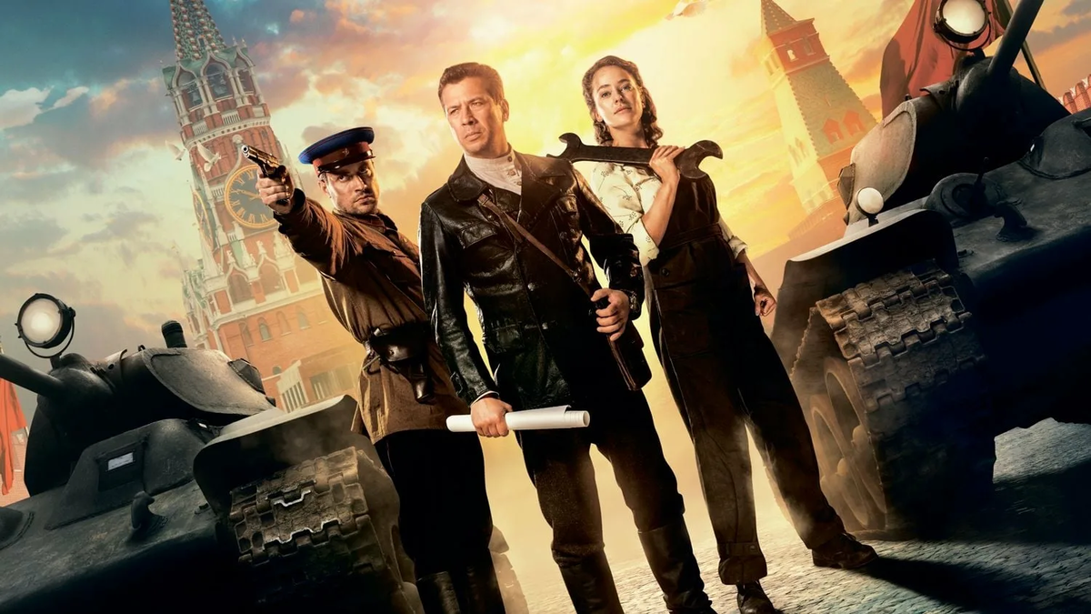 Ну ладно возвращаемся к просмотру фильма. Далее идут стилизованные титры под эпичную музыку. Ну а нас уже кидают на Харьковский завод. Сотрудник НКВД получавший сообщение бежит в конструкторское бюро и сообщает Кошкину что погрузка танков отменяется, так как техника к смотру не допускается. Кошкин на это и говорит, ну не надо грузить, так не будем грузить, после чего уходит. Оказывается у Кошкина есть хитрый план, так как своим ходом на смотр техники никто ехать не запрещал, то своим ходом на танках они в Москву и поедут, заодно необходимый пробег для танков намотают. Сотрудник НКВД разумеется против такой инициативы и говорит что никто никуда не поедет.