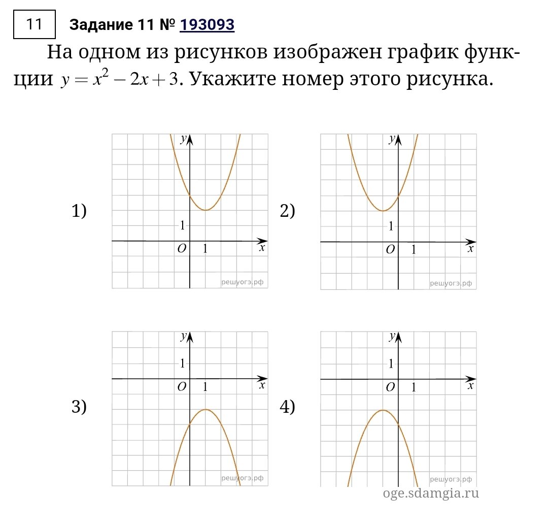 Коэффициент a>0, поэтому ветви параболы направлены вверх. Абсцисса вершины параболы равна: -b/2a=1.