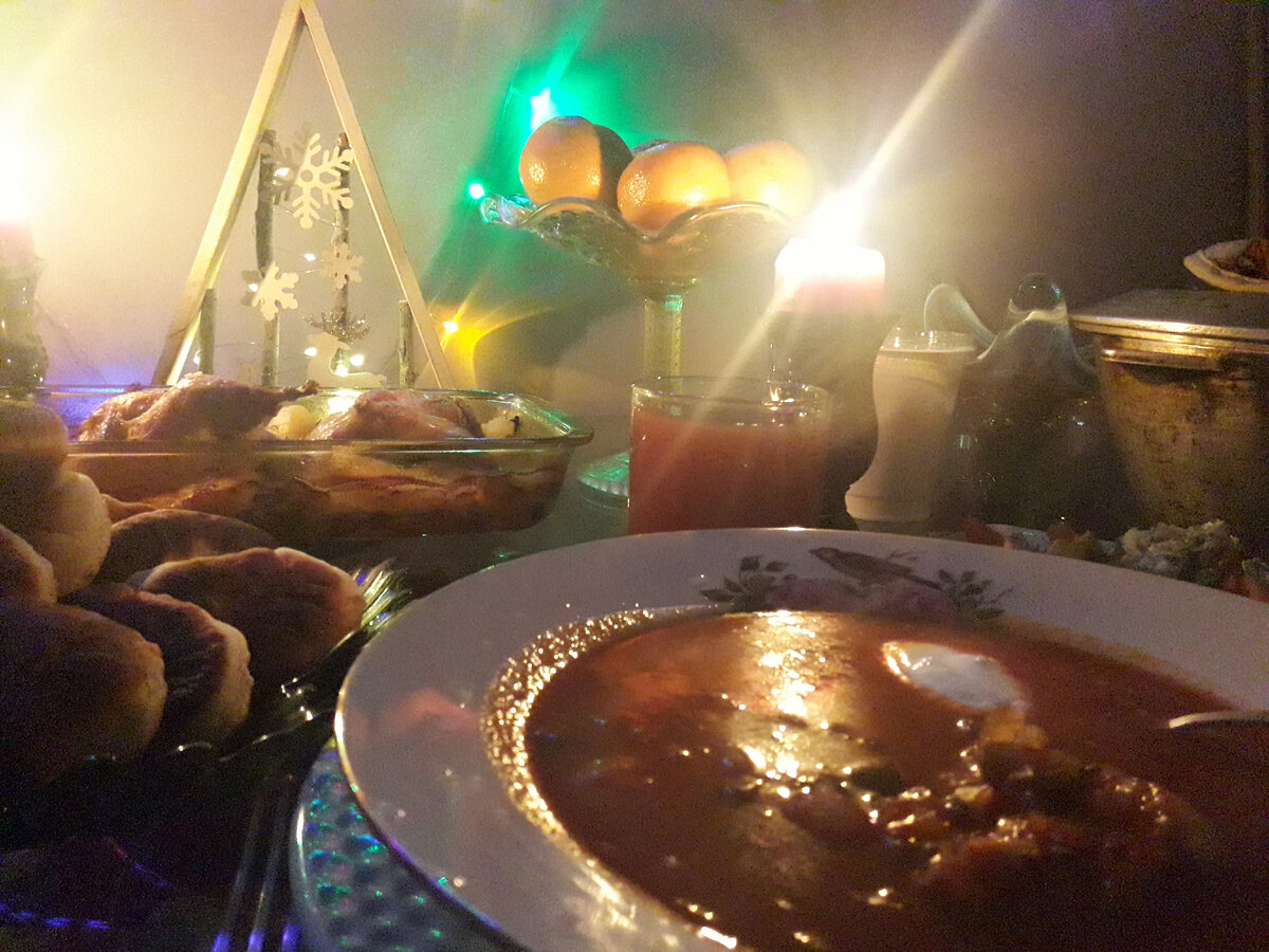 Привет, друзья! Хочу рассказать о том, как я варю борщ за 5 минут, на скорую руку, так сказать-зимний вариант, если срочно хочется горячего похлебать, а времени в обрез. Тут главное что бы был бульон уже готов. У меня бульон был сварен с утра. Как только мы переступили порог дома в выходной ( ездили по делам), я сразу же его довела до кипения, добавила ложку томатной пасты- а как закипел, то баночку заправки для борща, которую делаю сама летом из излишков овощей, которые растут у меня на даче. Добавляю в эту заправку я все, что под руку попадется-свекольные листья, лук, чеснок, зелень, фасоль, помидоры и конечно свеклу. Свеклу добавляю в самом конце варки такой заправки, что бы сохранить цвет. А зимой остается только добавить свою заготовку в кипящий бульон и через 5 минут готово. Иногда добавляю половинку ложки сахара в борщ👍, если в заправке многовато уксуса. Но это не так часто. Конечно летом хорошо варить борщ на даче. Полно свежих овощей. Ну а зимой такой походный вариант тоже