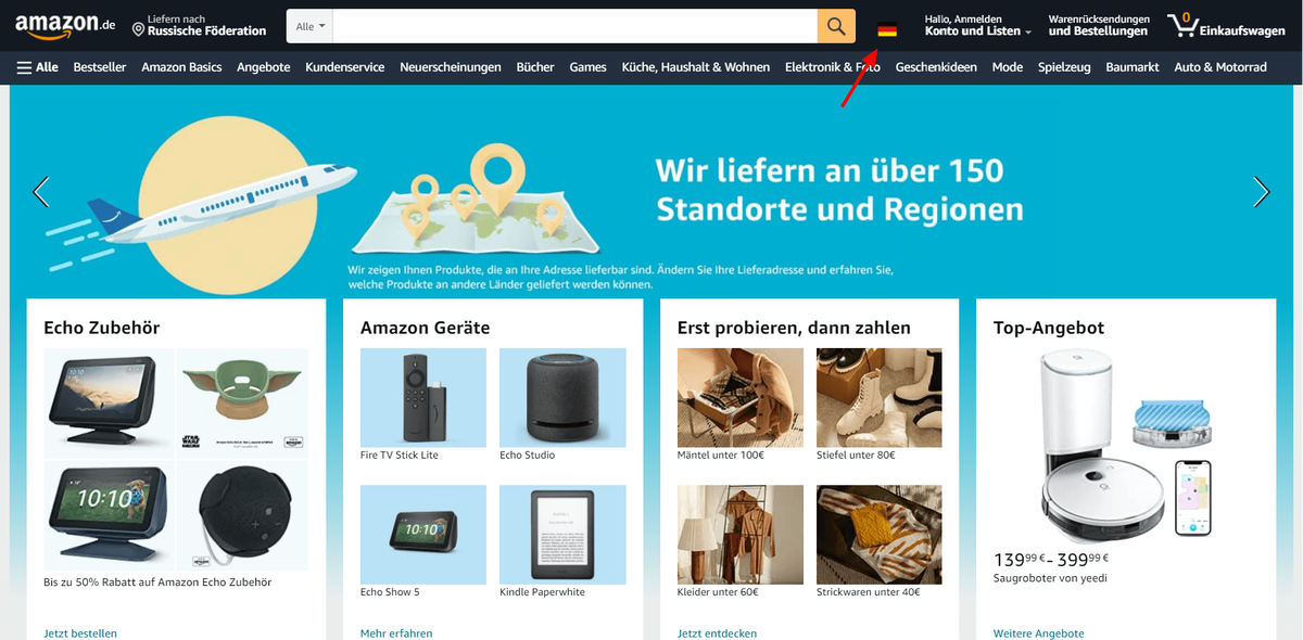 Теперь вы зарегистрированы на немецком сайте Amazon и можете делать покупки с доставкой в Россию