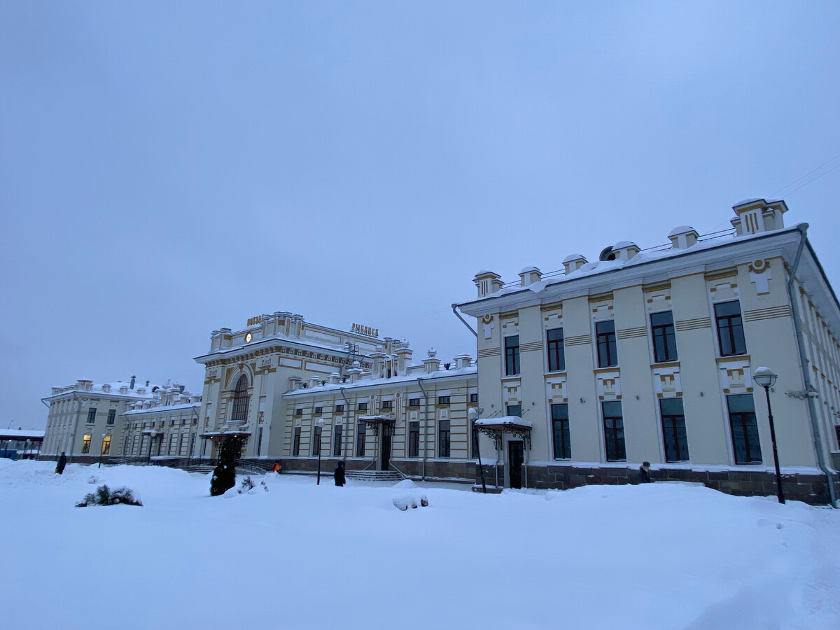 Раннее утро. Железнодорожный вокзал просторный, светлый. Здание вокзала очень красивое. Если приглядеться, фасад напоминает Витебский вокзал в Санкт-Петербурге. Архитектор один – Сима Минаш. После открытия в 1905 году здесь проходили балы, концерты, званые вечера.