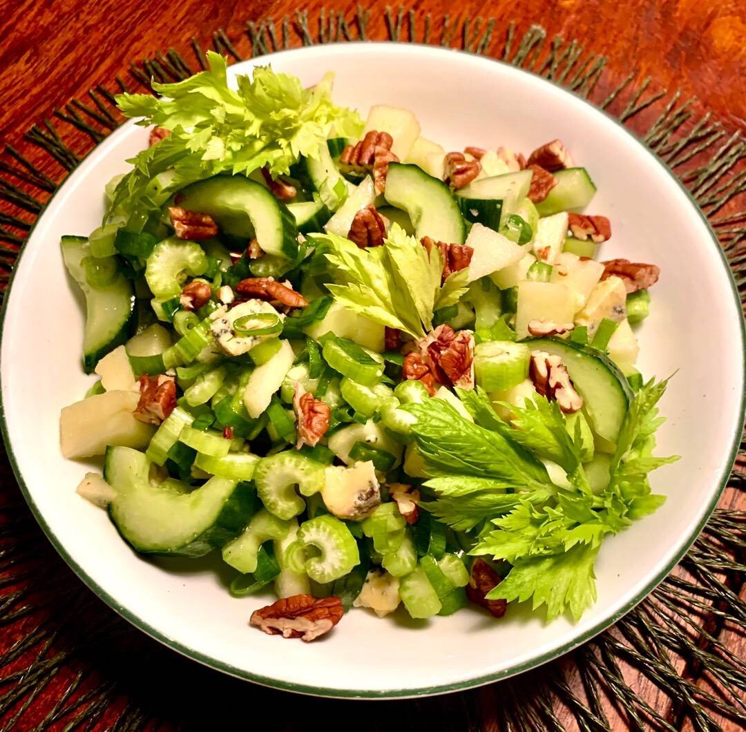 Хрустящий салат из огурцов и сельдерея с голубым сыром