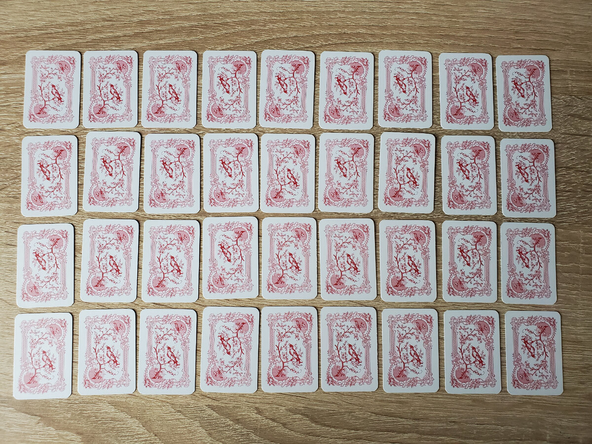 Пасьянс на 36 карт. Раскладываем в виде табло все карты рубашкой вверх. В горизонтальных рядах - 9 карт, в вертикальных - 4. Задача - открыть все карты, переместив их на свои места от 6 до Т во всех рядах. При этом мы должны помнить, что верхний горизонтальный ряд - это ряд карт червонной масти, второй - бубновой, третий - трефовой и четвертый - пиковой. Открываем нижнюю правую карту в четвертом ряду, где предположительно у нас должен быть Т пик. На месте Т пик оказался К треф. Перемещаем его на свое место в "партере", то есть в третий ряд на восьмое место, открывая карту, которая занимает место К треф. Место К треф занимает 10 бубен. Кладем ее на свое место... Таким же способом открываем другие карты, пока не откроется Т пик. Как символ трудностей и рока. Можно облегчит себе задачу: не останавливаться на Т пик, а открывать дальше карты поочередно при остановке пасьянса, которые расположены на Т треф, Т бубен и, наконец, на Т черви. Однако, такой пасьянс будет сходится чаще, а знач