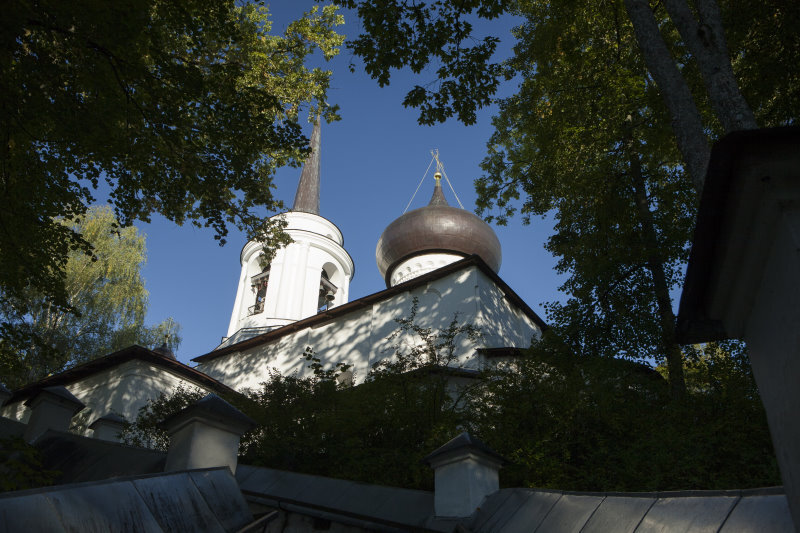 Святогорский монастырь был основан по велению Ивана Грозного в 1569 году. На этом месте вороническому юродивому пастуху Тимофею было несколько явлений чудотворной иконы Божией Матери, и когда весть об этом дошла до царя, здесь, на Синичьей горе, переименованной в Святую, и был устроен монастырь. На самом верху горы стоит мощный каменный собор Успения Божией Матери (1569). Толщина стен собора – 1,5-2 метра, своды подпирают массивные столпы. Во время Великой Отечественной войны фашисты, отступая, попытались взорвать храм, но ничего не получилось – взрыв повредил кровлю, древние же стены устояли. Другие постройки монастыря пострадали намного сильнее. После войны монастырь был восстановлен и передан Пушкиногорскому музею. Известен всей стране Святогорский монастырь не только и не столько своей древней историей и легендами, сколько тем, что здесь находится могила А.С.Пушкина. Небольшой фамильный некрополь Пушкиных-Ганнибалов у апсиды Успенского собора появился, когда дед поэта, Иосиф (Осип)