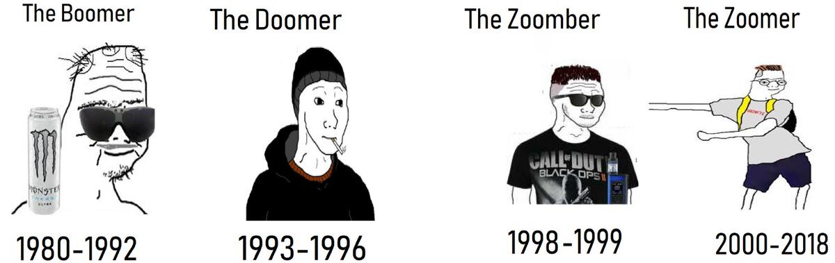 Поколение Z в России Зумеры — это подростки, современная молодежь, «цифровое поколение». Так называют представителей условного поколения Z, рожденного после 1996 либо после 2000 года. Зумеры — это парни и девушки, которые постят видео в тиктоке, слушают Моргенштерна или Билли Айлиш, ходят с беспроводными колонками и «стэнят своих крашей». Примеры употребления: Зумеры, бумеры и миллениалы – кто они такие Предыдущее поколение — люди, рожденные в 1980-е и 1990-е — это миллениалы, поколение Y. А родители миллениалов — бумеры, поколение бэби-бума. Между ними — поколение X, иксеры, о которых почему-то вспоминают редко. Но американская классификация поколений в бывшем СССР не всегда работает. Поэтому российские социологи порой предлагают использовать другое деление — на «последнее советское поколение», «детей перестройки» и «рожденных при Путине». Теория поколений не является научной. Но в популярной культуре и юморе образы ворчливого бумера, не желающего взрослеть миллениала и школьника-зум