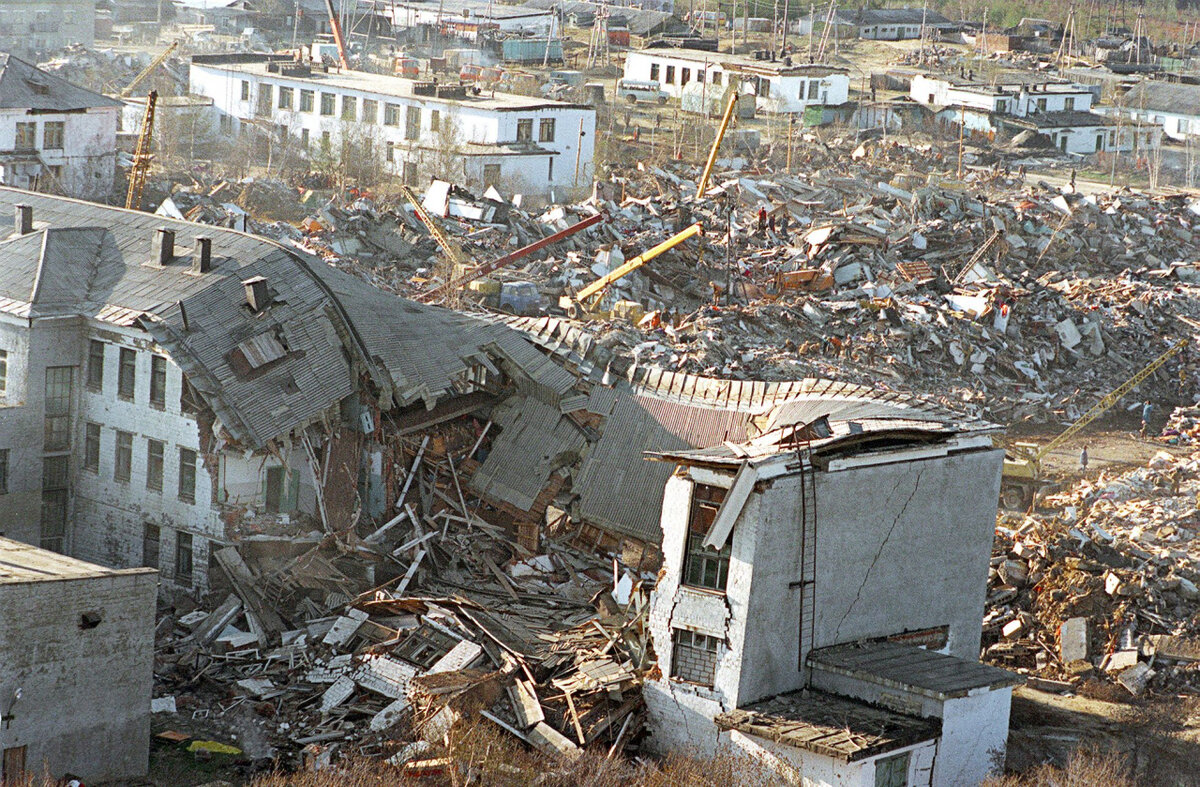 Начальник отделения милиции Нефтегорска еще вечером уехал на дачу. Вернувшись, он попросту не увидел города, вместо уютных улочек были разрушенные дома. Практически одновременно с ним о трагедии узнали пилоты вертолета, летевшего в соседнюю Охту, более крупный город, который тоже пострадал от подземных толчков, но не так сильно, как Нефтегорск.