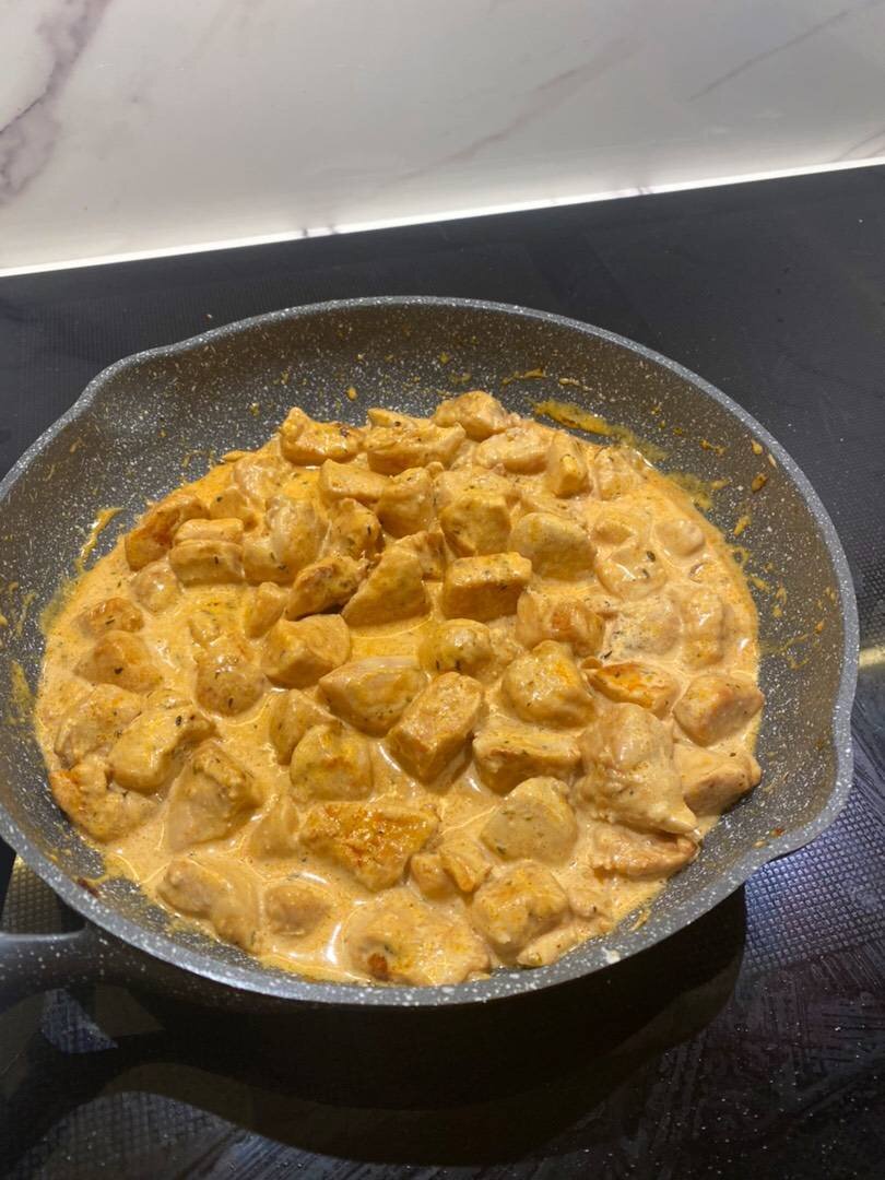 Ингредиенты: Сливки, Курица филе, Чеснок , Соль, паприка, перец, Прованские травы, Соевый соус Способ приготовления: Порезать курицу, добавить чеснок и специи, жарить мин 10 затем потушить 15 мин. Добавить соевый соус, обратить в нем курицу, добавить сливки и тушить мин 10-15:) приятного аппетита! Готово:).