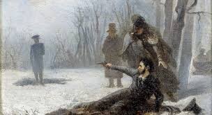 10 февраля 1837 года в 14:45 - умер камер-юнкер Александр Пушкин после дуэли на Чёрной речке с поручиком Кавелергардского полка Жоржем Геккерном (Дантесом). Перед смертью Александр Пушкин просил у государя прощение за нарушение запрета на дуэли, а также помилования для своего секунданта. В ответ была получена записка от Николая I: «Если Бог не велит нам уже свидеться на здешнем свете, посылаю тебе моё прощение и мой последний совет умереть христианином. О жене и детях не беспокойся, я беру их на свои руки». После кончины поэта государь распорядился заплатить долги Пушкина, заложенное имение отца очистить от долга, вдове обеспечить пенсион, сыновей определить в пажи и по 1500 р. выплачивать на каждого по вступлении на службу, сочинения издать за казенный счет в пользу вдовы и детей, единовременно выдать семье поэта 10000 рублей. Похоронят Александра Пушкина по его желанию в Святогорском монастыре 18 февраля 1837 года по новому стилю.