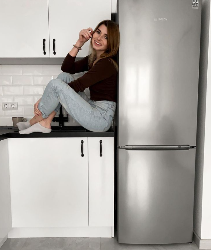 Марку взяли бош, как и все остальное. Цвет - металлик, т.к. он присутствует во всей технике и это смотрится гармонично. Высота товарища - 185 см. Изначально дизайнер нам советовала взять - 200 см., мол это стандарт сейчас. Возможно, я не знаю🤷🏼♀️ Но решила отталкиваться от себя. Мой рост всего 160 см. И я с трудом достаю до полки с чашками в новой кухне, т.к. она сделала по нынешним меркам. Я не достаю дома до верхних полок, где лежат мало важные предметы. В шкафах с одеждой я не пользуюсь двумя верхними полками, думаю объяснять почему нет смысла, все потому же😺 Ну и зачем мне холодильник такой высокий? Честно говоря я даже не понимаю, что туда класть? Банки какие-нибудь? Всю остальную еду я же регулярно юзаю, а подставлять стульчик при каждом открытии дверцы как-то не радует меня в перспективе. Есть владельцы великанов?!☺️