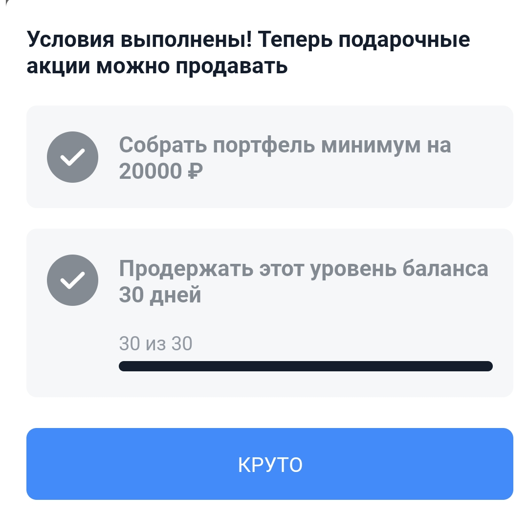 Некоторое время назад я уже публиковала пост о том, что решила поучаствовать в промоакции от брокера Тинькофф Инвестиции ради небольшого бонуса. Сейчас, когда бонус зачислен на счет, спешу рассказать об условиях акции и о том бонусе, который я получила. Условия акции Суть промоакции достаточно простая - надо подарить акцию другу, когда он ее примет, на счет дарителя будет зачислен бонус - акции на выбор Тинькофф Инвестиции. Подарить акцию можно даже тому, у кого не открыт счет, но что бы акция зачислилась на счет, необходимо будет открыть брокерский счет. Таким образом банк привлекает новых клиентов. Дарить можно далеко не все акции, а только из определенного списка. Я не знаю обновляется ли список акций, поэтому не буду приводить его тут. Список акций есть в приложении Тинькофф Инвестиции. Но что интересно, он не указан в полных правилах промоакции. Срок действия акции до 11 марта 2022 года. После получения подарка его надо продать, чтобы обналичить. И вот тут всплывает условие, что