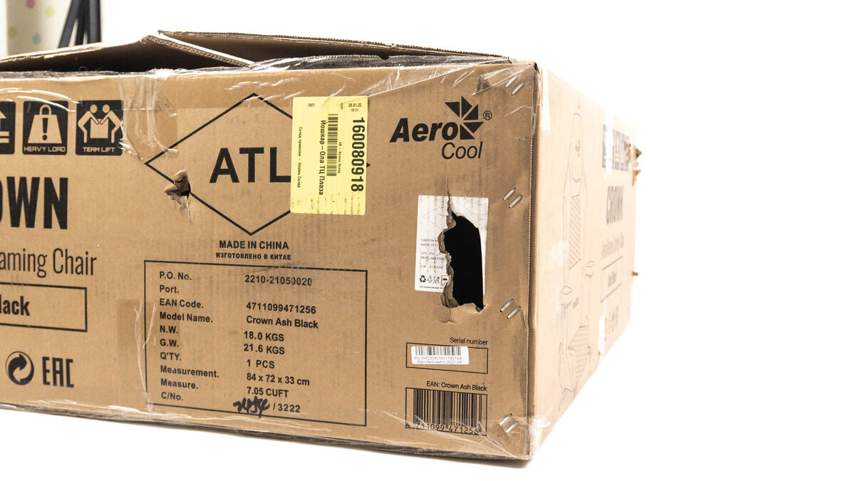 Заказывал кресло через сайт с доставкой на дом и подъемом на этаж. Оплатил сразу и мне осталось только дождаться доставки. Привезли в заявленный день и срок. Вроде бы все должно быть хорошо, но тут у автора знатно пригорело возникло желание поругаться, ахтунг вопрос завис как в воздухе, так и появился в глазах. Двое взрослых мужчин, которые доставляли мне кресло, сделали дырки в коробке, чтобы им удобнее было нести. Пока несли, собрали все углы на этажах, шум стоял такой, что соседи вышли посмотреть, что происходит в подъезде. Для тех, кто думает, что там вес был неподъемный для одного человека, вес AeroCool Crown AeroWeave с учетом коробки не превышает 22 кг.