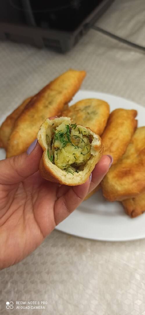 Румяные, пышные и очень вкусные пирожки с картошкой! Воздушное и быстрое тесто! Ингредиенты: Для теста: , Мука пшеничная, Дрожжи сухие , Сахар , Соль , Вода , Молоко , Масло растительное , Для начинки:, Картофель , Лук репчатый , Соль , Перец чёрный молотый , Зелень укропа, Масло растительное - для жарки лука и пирожков Способ приготовления: Готовим тесто для пирожков. Муку просеиваем высыпаем горкой, в центре делаем углубление, куда вливаем тëплую воду, молоко, добавляем соль, сахар, дрожжи и замешиваем тесто. В процессе замешивания теста добавляем в него растительное масло. Замешиваем мягкое и не липкое дрожжевое тесто. Ставим в тепло на 1 час, для подъема. Пока тесто стоит, готовим начинку. Картофель очищаем и варим в подсоленной воде до мягкости. Из сварившейся картошки сделать пюре. Лук порезать мелкими кубиками, обжарить на растительном масле до золотистого цвета. Добавить жареный лук вместе с маслом к картофельному пюре. Добавить ещё соли (при необходимости) и свежемолотый перец