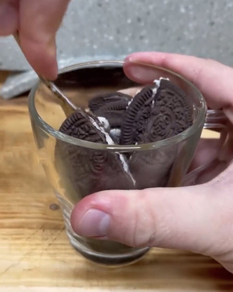Ингредиенты: 1) Печенье Орео 2) Молоко Приступаем к приготовлению: 1. Растолочь печенье вилкой в кружке 2. Залить молоком 3. Перемешать 4. Поставить на 2 минуты в микроволновку 5. Ваш Брауни в домашних условиях готов! Подписывайтесь, и мы чаще будем выкладывать подобный быстрые рецепты!