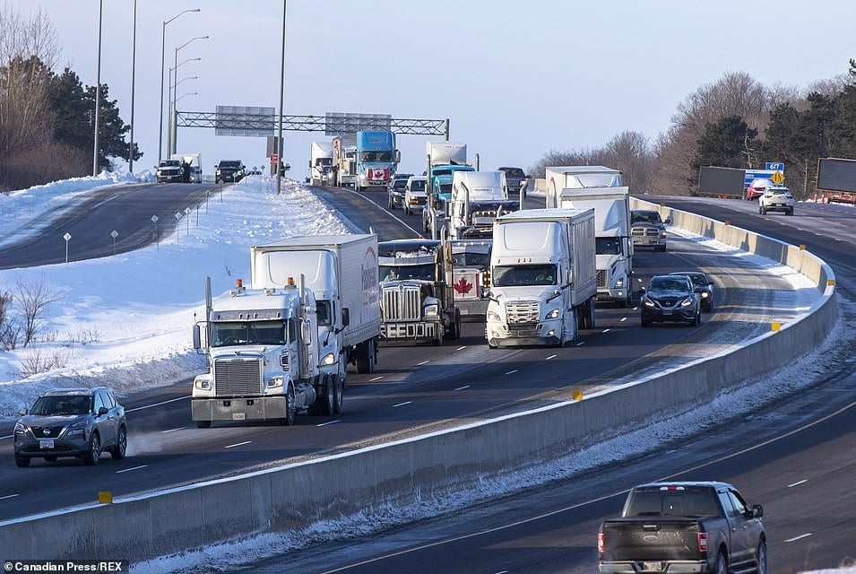 Дорога между Северной Дакотой и Манитобой успешно перекрыта. Это четвертая линия фронта. Первая - Оттава, вторая - мост между Детройтом и Виндзором, третья - деревушка Кутц между Альбертой и Монтаной. Одновременно проходит акция у аэропорта Оттавы. Колонна из примерно 60-70 автомобилей медленно и по кругу едет по дорогам перед зданием аэропорта, куда прибывают и откуда уезжают пассажиры. Между тем в парламенте Канады идут жаркие дебаты между представителями правых и левых. Представители партии консерваторов обвиняют Трюдо в том, что он не желает выслушать свой народ. Ему начали задавать вопрос о том, как он собирается решать проблему, но случилось непредвиденное - Джастин сбежал из зала заседаний, даже не выслушав вопроса. Видно, нервишки шалят... К мосту между Виндзором и Детройтом, который полностью занят фурами протестующих, сейчас подогнали буксировочные машины. До сегодняшнего дня ни одна компания не шла навстречу правительству и не соглашалась делать эту работу. Все-таки нашли