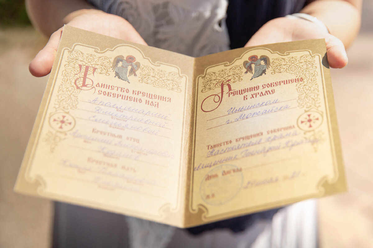 Свидетельство о крещении - это документ, который выдается родителям младенца после совершения над ним таинства крещения. Это серьёзный документ с подписью священника и печатью храма. В нём содержится важная информация: дата и место крещения, имена воприемников (крёстных), указывается небесный покровитель новокрещённого и день празднования его памяти, а также кто совершил таинство крещения. Чаще можно встретить типовую форму свидетельства, разработанную патриархатом, но нередко встречаются и оригинальные формы, разработанные храмом самостоятельно. Свидетельство рекомендуется хранить, а в случае его утери, можно восстановить обратившись в храм, где проходило крещение.
