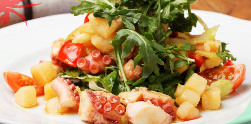 Рецепт: Салат с осьминогом, картофелем и рукколой