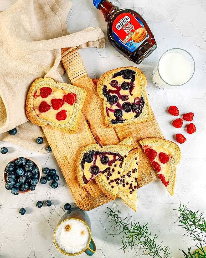 Тренд ТикТока, который мне тоже захотелось приготовить! #игры Топпинг можно выбрать любой, который вам больше нравится! Ингредиенты: мягкого хлеба, яйцо, греческий йогурт, кленовый сироп, свежей малины, Тёмный шоколад, Голубика Способ приготовления: Взбить яйцо с йогуртом. Не прорезая сделать углубления в хлебе * Выложить йогуртовую смесь в углубление хлеба и сверху выложить топинг. Ещё раз. Положить тосты на противень устланный пекарской бумагой и выпекать 8-12 минут при 180°. Готово!
