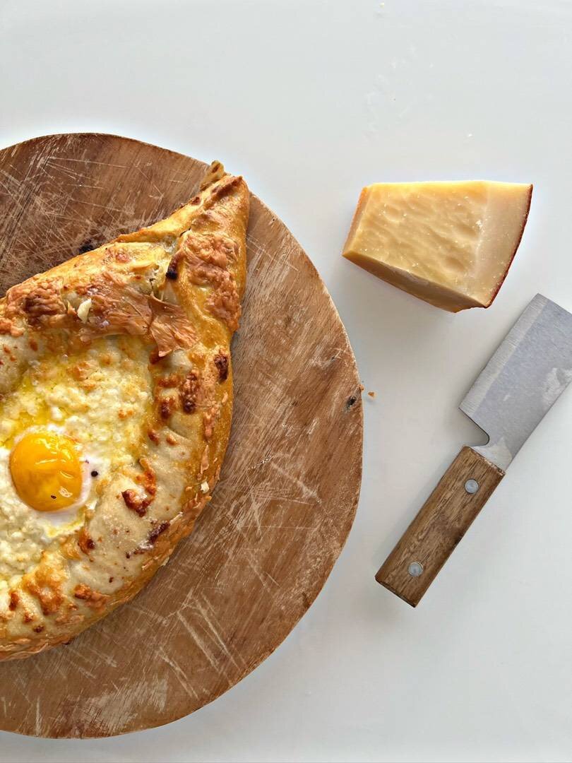 Ингредиенты: 🥣 Тесто, мука, воды, соли, сахара, сухих дрожжей, растительного масла, 🥣 Начинка, сыра сулугуни, яичного белка, муки, воды, 🥣 Дополнительно, желтка для смазывания, желтка (в зависимости от выбранного количества хачапури), слайса сливочного масла Способ приготовления: Для теста добавляем в теплую воду соль, сахар и дрожжи. Замешиваем и даём постоять 15 мин. до образования «шапочки». Если она не образовалась-замените дрожжи, они уже не активны. В просеянную муку добавляем нашу массу и замешиваем тесто. Когда тесто сформировано, добавьте растительное масло и хорошо его снова замесите. Смажьте миску и тесто подсолнечным маслом, накройте пленкой и оставьте в тёплом месте на 1 час. Для начинки натираем сыр, добавляем в него белок, муку, воду и хорошо перемешиваем. Подошедшее тесто разделяем на две части (если хотите 2 небольшие порции) или оставляем целым. Формируем руками или скалкой «лодочку», добавляя начинку. Смазываем хачапури желтком и выпекаем при 200 С 15-20 мин. испо