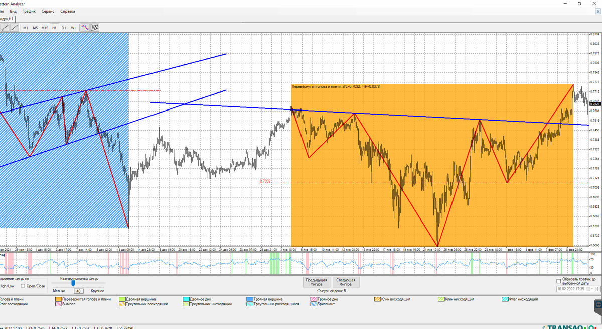 Сигнал по РусГидро Анализ графика проведен с помощью аналитической программы по автоматическому анализу биржевых графиков PATTERN ANALYZER. Программа Pattern Analyzer обнаружила на графике РусГидро, H1 новый торговый сигнал (графический паттерн): Название фигуры: Перевернутая голова и плечи Тип сделки: Покупка Стоп-лосс ниже: 0,7092 Тейк-профит: 0,8378