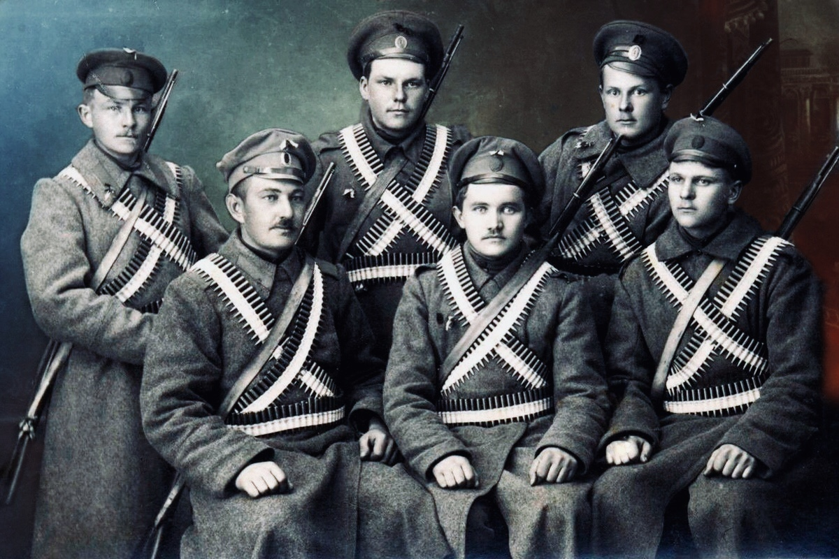 Шёл 1917 год. Октябрьская революция, первая мировая война. Можно увидеть военных, которые поверх своего стандартного костюма опоясывали себя пулеметными лентами. Такой образ был вполне реальным, а особую значимость он начал обретать при выходе на свет разных военных кинохроник и архива старых фотографиях.