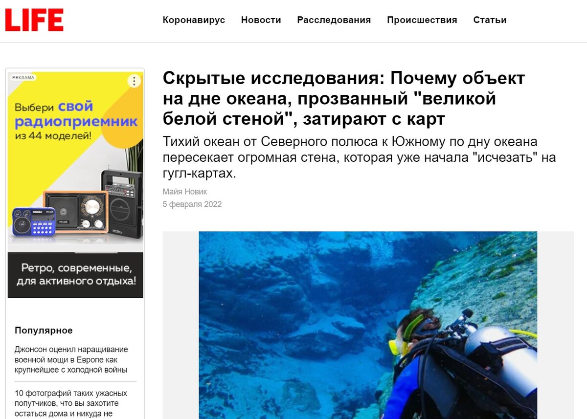 Скрытые исследования: Почему объект на дне океана, прозванный "великой белой стеной", затирают с карт