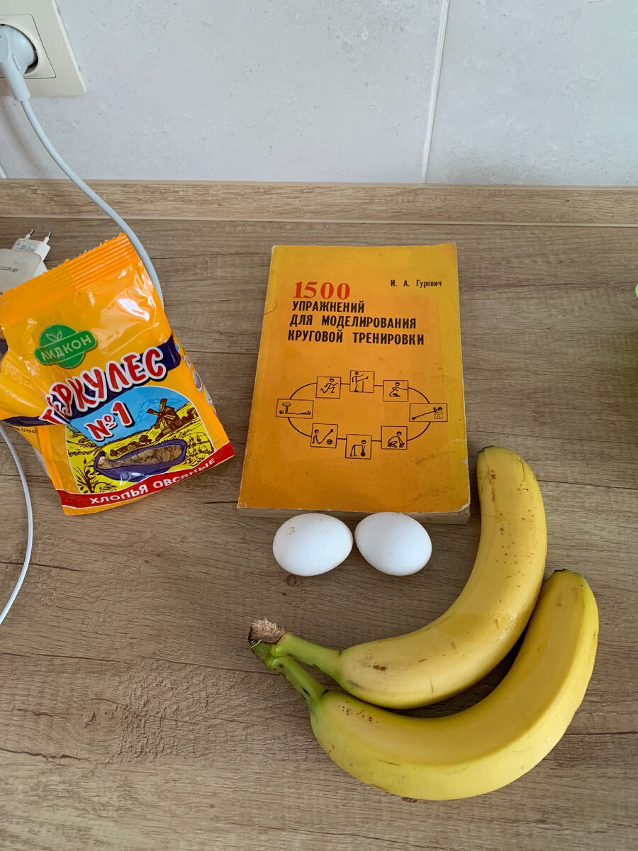 что нам нужно 2яйца 2банана 3столовые ложки каши Геркулес процесс приготовления берем 2 банана и из них делаем вилкой пюре , раздавливаем. Далее так же из яиц делаем однородную массу вместе с бананами и добавляем 3 ложки каши геркулес) соль и сахар чуть-чуть совсем)все перемешиваем и отправляем на сквороду на 5-7минут под крышку готовиться ) вкусный завтрак, приятного аппетита я половину уже съел) очень вкусно)