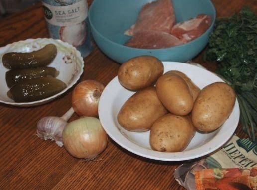 Это блюдо готовят из говядины и даже баранины, но азу по-татарски со свининой также невероятно вкусное. Готовится оно классическим способом и не требует особых навыков. Приготовить его смогут все. ИНГРЕДИЕНТЫ Шаг 1 1. Великолепный рецепт приготовления азу по-татарски со свининой. Готовится классическим способом. Для начала подготовьте все ингредиенты. Шаг 2 2. Свинину следует брать постную. Нарезаем ее соломкой и отправляем жариться. Жарим до румяного цвета и тем временем чистим картофель. Шаг 3 3. Шинкуем лук. Теперь нужно его отправить жариться на растительном масле. Остальные ингредиенты для азу тоже обжарим отдельно. Шаг 4 4. Добавляем лук к мясу и вливаем приготовленный соус (я перекручиваю обычно свежие помидоры). Солим и приправляем по вкусу. Шаг 5 5. Добавляем соленые огурцы и тушим вместе с соусом. Отдельно обжариваем картофель и отправляем к мясу. Шаг 6 6. Добавляем немного воды и чеснок. Тушим. Нужно дождаться, пока вода практически полностью выкипит. Шаг
