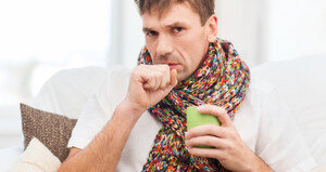 При попадании возбудителя в организм человек практически сразу начинает ощущать первые признаки развития заболевания, которые проявляются першением и жжением в горле. На второй день эти неприятные симптомы перерастают в нечастое покашливание, усиливающееся со временем. Как правило, на третьи сутки слизистая поражается вирусом, и кашель становится влажным, происходит обильное выделение мокроты. Она нередко окрашена в желтовато-серый или зелёный цвет, который сигнализирует о бактериальном воспалении. Часто в мокроте, выделяющейся при кашле, можно обнаружить примесь крови.