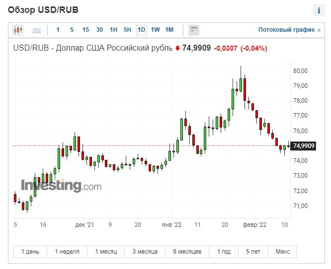 UPD: По окончанию пресс-конференции главы ЦБ курс рубля начал снижаться, к 17 часам он дошел до 75,80 рублей за доллар.