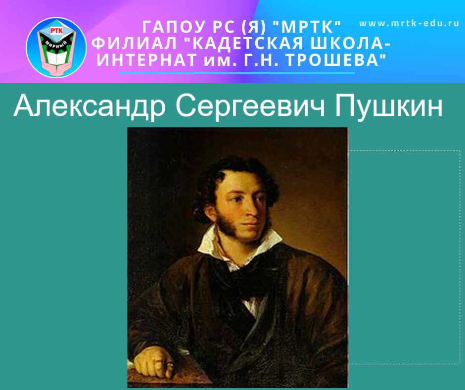 В ГАПОУ РС(Я) «МРТК» в филиале «Кадетская школа-интернат им. Г.Н. Трошева» прошли классные часы, посвященные дню памяти Александра Сергеевича Пушкина. Этот день – знаковое событие, как в истории нашей школы, так и в истории мировой литературы.
