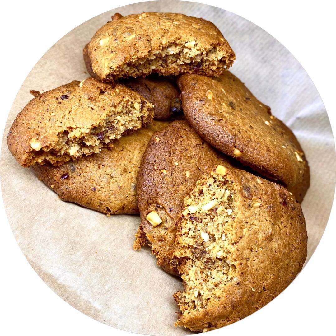 Ингредиенты: сливочного масла, желтка, разрыхлителя, фиников, муки, Орехи, корица (по желанию) Способ приготовления: Смешать масло (комнатной температуры) и желток. Финики и орехи измельчить в блендере. Соединить обе массы, добавить сухие ингредиенты, перемешать. Сформировать печенье на пергаменте. Выпекать в разогретой до 180°духовке 10-15 минут.