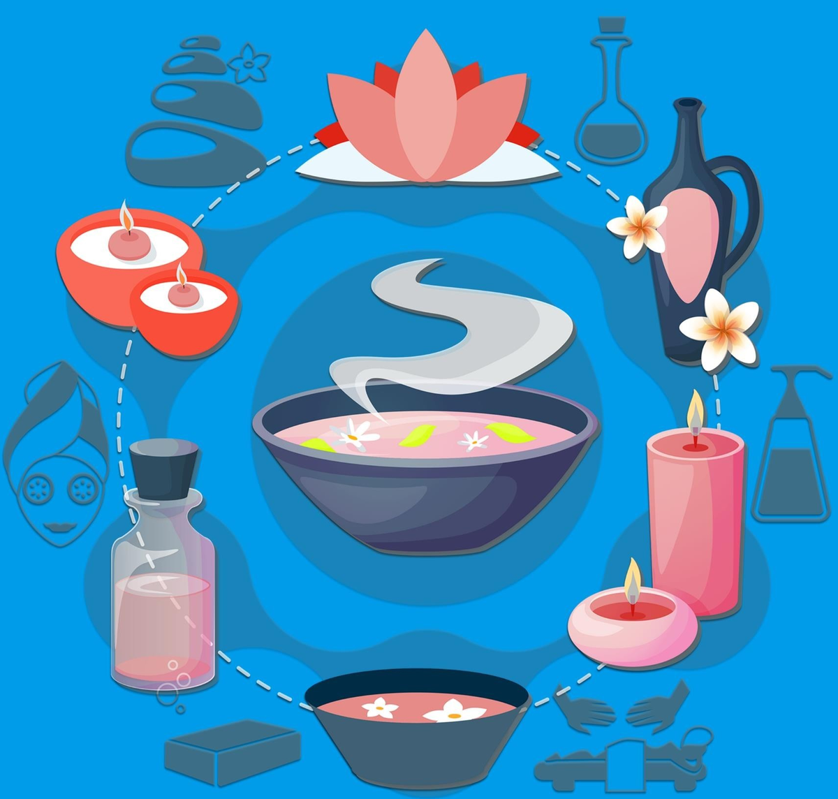 Ароматерапия исходит из масел, извлеченных из растений или деревьев. Вот несколько примеров: ромашка, жасмин, лаванда, сандаловое дерево и иланг-иланг. Они упакованы в маленькие бутылочки, и добавление нескольких капель в теплую воду или использование ароматических свечей оказывает удивительное воздействие на человека.