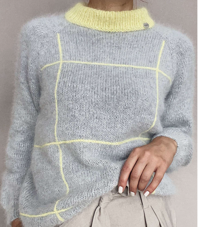 Свитер KATYA - я влюблена в него. Не вот посмотрите какой он нежный! Все благодаря тому, что для вязания использовался длинноворсовый пух норки (ангора китайская). В интернете можно найти по нему МК стоимостью 550 рублей. Но, в нем реально нет ничего сложного, если вы умеете пользоваться KnitStyler или же сами делать расчёт реглана. Правда, я не умею определять это реглан сверху или классический - напишите в комментариях, пожалуйста)