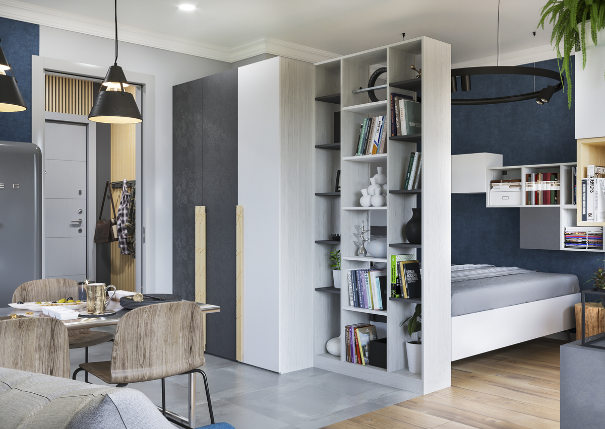 Как разделить пространство шкафом? Шкафы -перегородки - хороший и дешевый вариант без ремонта. Разбейте пространство своей квартиры на части. Мебель помогает зонировать большую комнату, а в маленькой квартире – это внутренняя перегородка. Помимо барьера, конструкция обладает хорошей вместимостью и служит системой для хранения различных вещей. Гардеробная перегородка эффективно служит для разделения комнаты. Из минусов можно отметить: -Недостаточная звукоизоляция; -Большой объем -Требует индивидуального изготовления, так как невозможно выбрать готовое изделие под конкретную цель. Этот предмет мебели является дополнительной системой хранения, а также имеет еще массу преимуществ: -Экономит 15% полезной площади за счет большей вместимости, если сочетается с простым гардеробом. -Эргономичная и продуктивная организация пространства. -Акцент в дизайне: изделия достаточно разные по используемым материалам и декору. -Экономит деньги на закупке стройматериалов, если вместо кирпичной стены устано