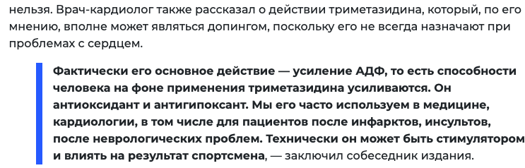 Официальное подтверждение положительной допинг-пробы Камилы Валиевой было озвучено. При этом у многих болельщиков есть надежды на то, что случилась ошибка: это микродоза, это лекарство, не влияющее на спортивные результаты, это от ангины и пр. Все ждут, что ТШТ сделает официальное заявление, прояснит ситуацию, однако тренерский штаб Тутберидзе продолжает упорно молчать. Почему так? Во-первых, потому что Триметазидин - это запрещенное вещество и юридически оно имеет статус допинга. Это вещество не влияет на взмахи руками, скольжение, технику, но оно влияет на общую выносливость, и он не от ангины, это кардиопротектор, метаболик, антигипоксант. Микродоза - официально не было заявления о микродозе, но если даже и она, это не снимает ответственность, а наоборот, свидетельствует о том, что препарат не успел вывестись из организма полностью на момент взятия пробы. Так что то, что препарата мало может не только снять обвинения, а, наоборот, усугубить ситуацию. Тренерскому штабу Тутберидзе