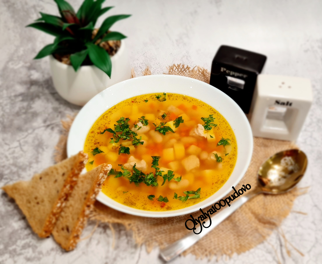 Прекрасный вариант супа для обеда или ужина в кругу семьи. Наша семья любит супы и в арсенале у меня уже много разных, вкусных рецептов. Чаще всего я их готовлю без зажарки. Этот суп готовится необычным способом, сначала зажариваем мясо и овощи, а затем заливаем их водой. Суп получается более насыщенным и вкусным. Советую попробовать. 😉 #игры Ингредиенты: мяса свинины без костей, морковь, луковица, картошек, воды, белой фасоли, лавровых листа, сушёного чеснока или 1 зубчик свежего, соль, чёрный перец, зелень, Растительное масло для жарки Способ приготовления: Мясо свинины режем на небольшие кусочки, тушим, а затем и обжариваем прямо в кастрюле с растительным маслом. Овощи режем мелким кубиком и отправляем к свинине, обжариваем всё вместе. Картофель чистим и режем на кубики, промываем и отправляем в кастрюлю. Обжариваем минут 5 и заливаем всё водой. Варим до готовности картофеля, затем добавляем фасоль, лавровый лист, сушёный чеснок, солим и перчим по вкусу. После добавления фасоли вар
