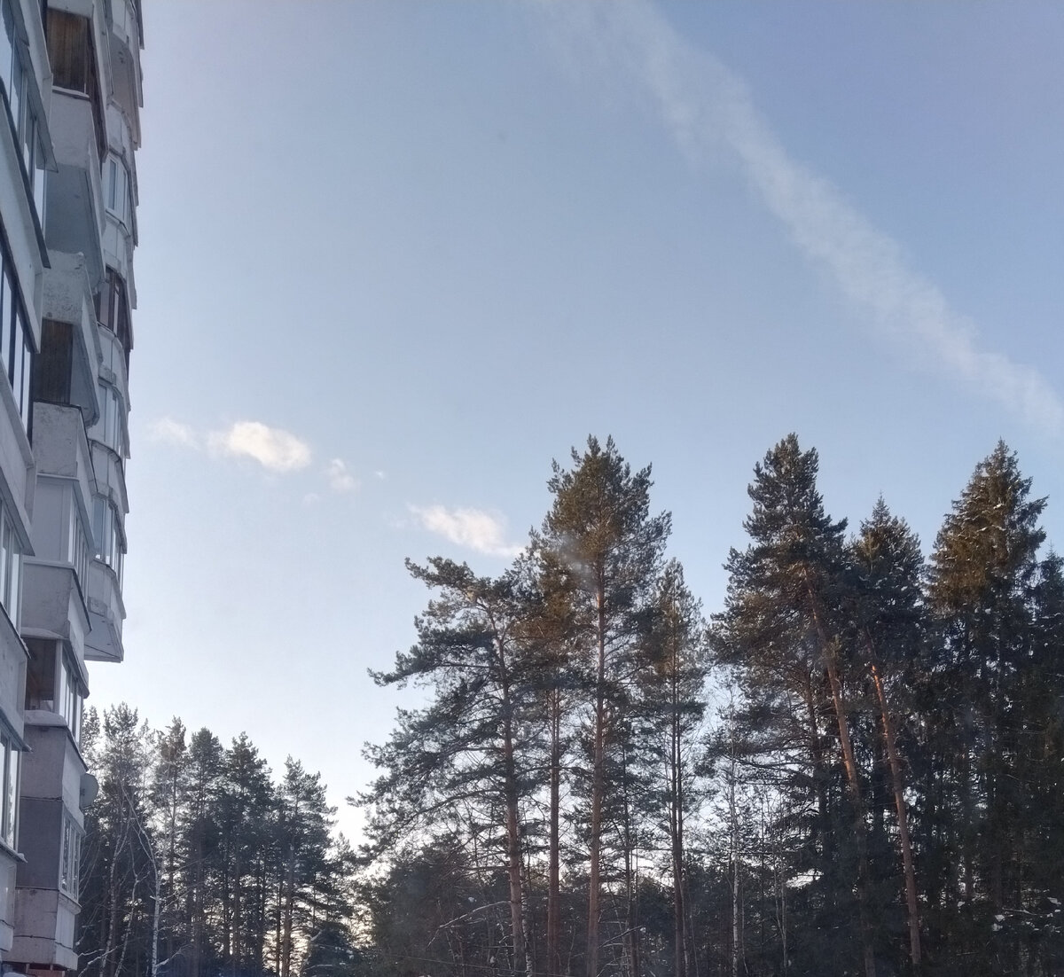 принцесса были мы с Семёном дома, он из-за соплей, я вроде бы, в отпуске. В девять утра стало ясно, что погода замечательная и - 8° (по версии Yandex) за нос не щиплет: Насморк, конечно, болячка неприятная, но когда мы дошли до карьера и огляделись, то поняли, что тут мы никого не заразим: Почему, собственно, этот шикарный склон, поросший молодым лесом, называют карьером? Потому, что здесь замечательный чистый кварцевый песок, который отсюда долго вывозили, срыли грунт, а потом край карьера благополучно осыпался, частично порос деревьями, в основном соснами. Ну и покататься места осталось. Если залезть наверх и оглянуться, то можно увидеть сосновый лесочек, за которым я и живу. Воооон там лесочек, за Семёном: Сосновый лес выше склона - это лесопосадки, рядами растёт, только с самого краю самосев. Но от этого он не стал менее прекрасным, чем выросший естественным путём. За рядовками по осени сюда съезжается толпа народу и всем хватает. Удобно, на городском автобусе за 20 минут от цент