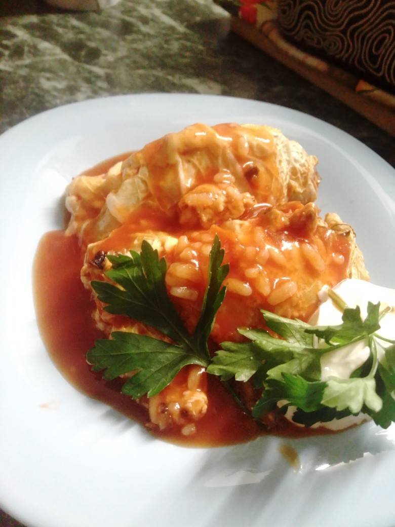 Так захотелось голубцов... Но белокочанной капусты свежей ещё нет,а в магазине прошлого сезона,грубоватая. Зато пекинская капуста поражает своими размерами. Листья крупные,как раз,чтобы завернуть голубцы. Не могла удержаться и решила попробую. Получился замечательный, лёгкий ужин. #игры Ингредиенты: пекинской капусты, фарша куриной грудки, луковица, риса, Специи на ваш вкус, Масло растительное для жарки, большую морковь, томатного сока Способ приготовления: Рис промыть и отварить до полуготовности. Репчатый лук порезать на небольшие кусочки. Обжарить на растительном масле. Морковь почистить и натереть на крупной тёрке. Обжарить вместе с луком. К овощам добавляем фарш, соль, специи. Хорошо перемешиваем, обжариваем несколько минут. Туда же добавляем рис, хорошо перемешиваем. И получилась наша начинка для голубцов. Разбираем кочан пекинской капусты на отдельные листья. Самую толстую часть листа аккуратно отбить. В каждый лист капусты положить большую ложку начинки и завернуть. Уложить гол