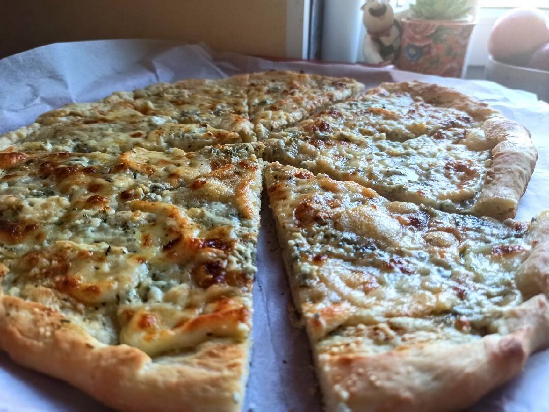 Как оказалось, для меня самая вкусная начинка у пиццы " 4 сыра". Тем, кто ещё не пробовал рекомендую обязательно приготовить. #пицца #игры Ингредиенты: Тесто (на 2 штуки):, тёплой воды, муки для пиццы, ч ложки соли, ч ложки сахара, прессованных дрожжей, ст ложки оливкового масла, Начинка (для одной пиццы):, моцарелла, Дор Блю, мягкий козий сыр, Грана Падано, ст ложки оливкового масла, сухой смеси"Итальянские травы" Способ приготовления: Делала тесто по рецепту, написанному на пачке муки для пиццы. Муку просеять, смешать с солью и сахаром. (Кстати, я не заметила принципиальной разницы во вкусе при использовании специальной муки для пиццы, поэтому можно брать обычную муку и не заморачиваться). Дрожжи развести в 50 мл тёплой воды, влить к мучной смеси, добавить оливковое масло, остальную воду, замесить тесто. Накрыть салфеткой, поставить в тепло, пока тесто не увеличится примерно в три раза. Выложить тесто на рабочую поверхность, разделить на две части. Противень смазать оливковым маслом,