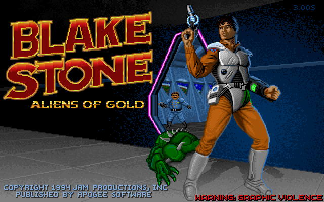 Blake Stone: Aliens of Gold была из той пачки игр, которые мне на компьютер установил добрый программист. И это был второй шутер в моей жизни (первый - Wolfenstein 3D). И единственный, который я прошел на самой высокой сложности! Ну, не во что было играть больше. Данная игра вовсю использовала движок детища id Software (создатели Wolfenstein 3D, Doom, Quake и т.д.), заметно его улучшив и добавив разнообразия. Однако Blake Stone вышел 3 декабря 1993 года, а через семь дней - 10 декабря, вышел Doom. Что называется, не вовремя зашел. Уверен, это сказалось на популярности и продажах игры Blake Stone. Поскольку данная игра относится к ранним FPS-шутерам, из нее прямо-таки торчат рога Wolfenstein 3D (Wolf). Однако создатели внесли ряд изменений, в том числе графических. Наш герой, как видно из заставки, агент, наподобие Джеймса Бонда. Его задача - за шесть эпизодов, по десять миссий в каждом, разрушить планы некого доктора Голдфайера по покорению мира. Ну конечно. Обидно, что моя версия игры