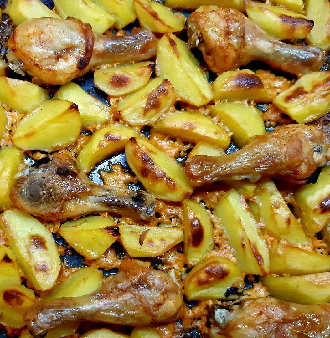 Куриные ножки с картошкой, запечённые в духовке